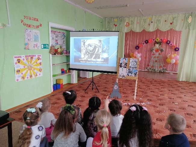 Цель: Познакомить детей с жизнью Великого космонавта- Юрия Алексеевича Гагарина, воспитывать чувство гордости за героические поступки народных герое, любовь к Родине.