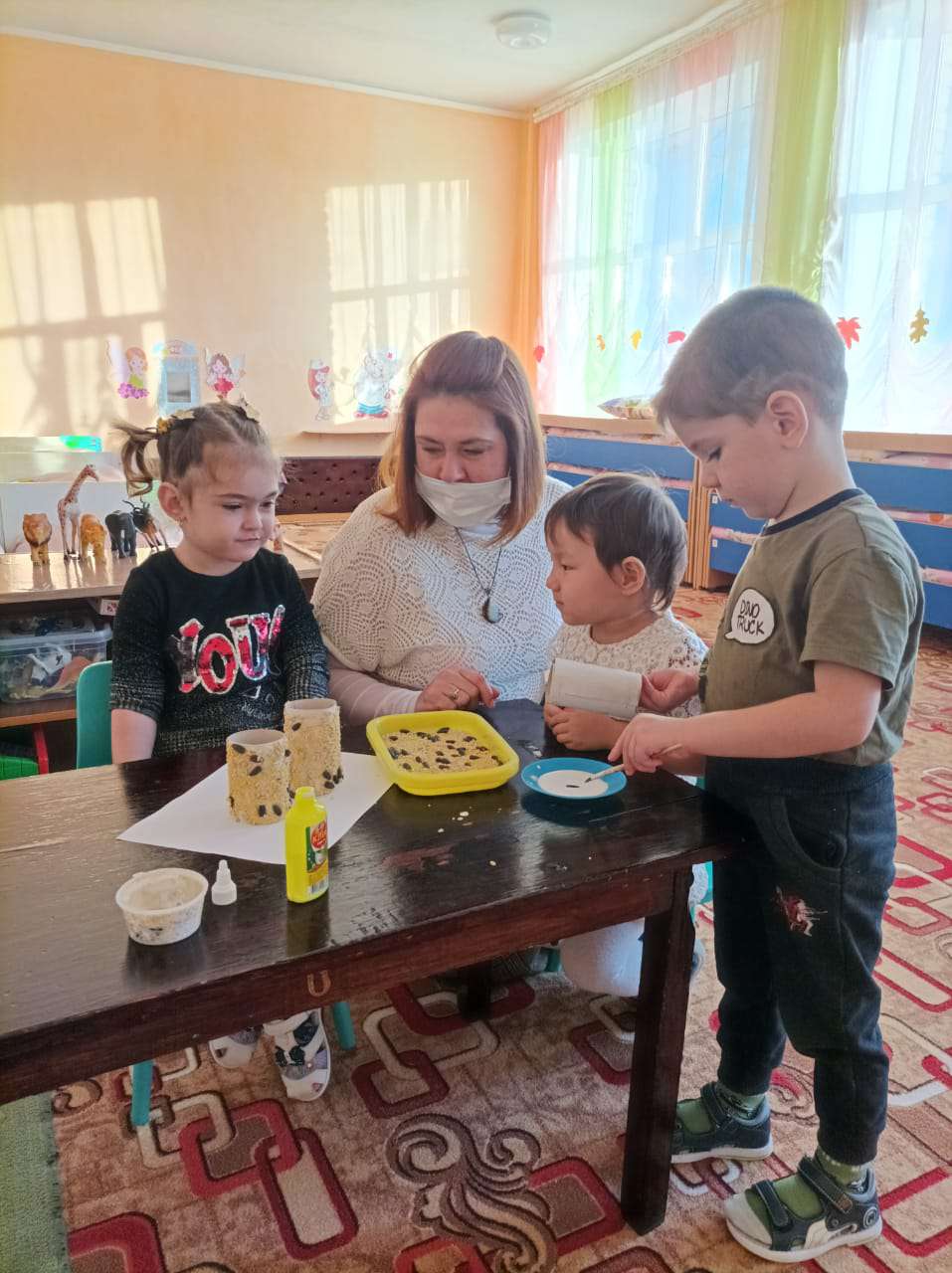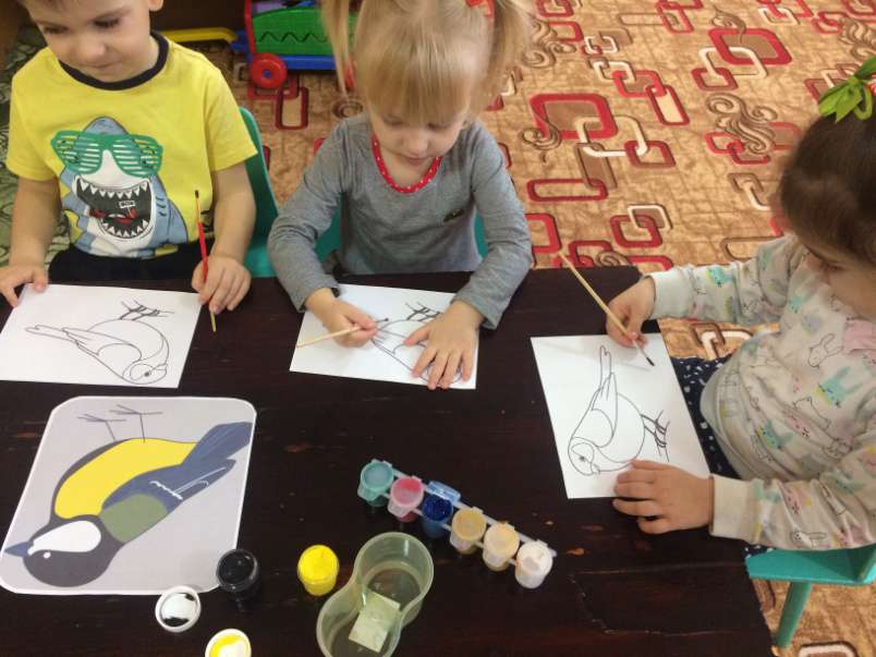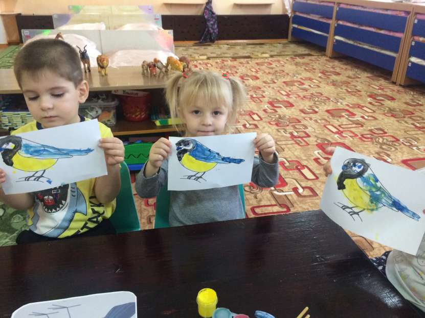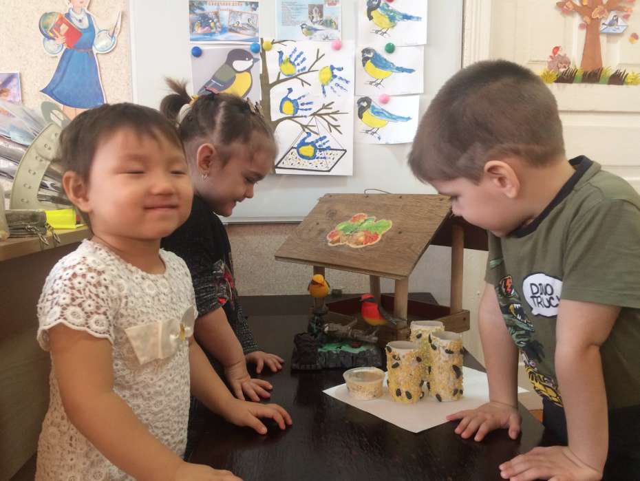 Ребята младшей группы «Колокольчик» решили поздравить синичек с праздником, они беседовали о жизни зимующих птицах, рассматривали иллюстрации с изображением синиц, закрашивали картинки, играли в игру «Найди синичку». Таким образом, посвятив день синицам, дети узнали, что зимой нужно мастерить кормушки, кормить птиц. Готовясь к встрече зимних гостей, дети изготовили кормушки и развесили их на деревьях нашего участка. Птичья столовая готова! Ребята ждут в гости пернатых друзей. Все воспитанники остались довольны полученными знаниями.