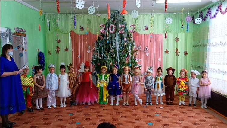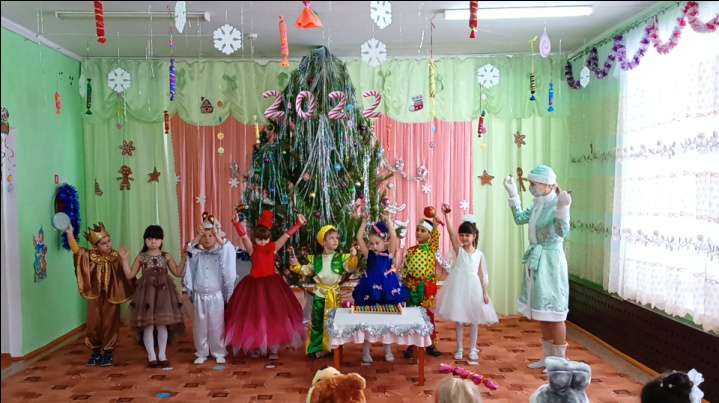 Новый год - это самый волшебный, весёлый праздник, которого дети ждут, веря в сказку и чудо. В старшей разновозрастной группе: «Мотылек» прошёл новогодний утренник "Сладкая страна". Красиво украшенный зал, нарядная ёлочка, подарки, Дед Мороз и Снегурочка, ожидали детей. Ребята погрузились в мир чудес, приключений, невероятных превращений и сюрпризов. Дети отправились в путешествие превратившись в сладких героев: «Принцесса Карамелька и Принцесса Мармеладка, Принц Чай, Принц Зефир, Принцесса Шоколадка и другие сладости.» Дошколята танцевали, пели песни, читали стихотворения, водили хороводы, играли в оркестре, с удовольствием веселились. Дети получили массу положительных эмоций и долгожданные подарки из рук Деда Мороза и Снегурочки!